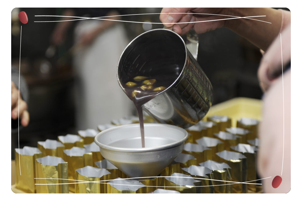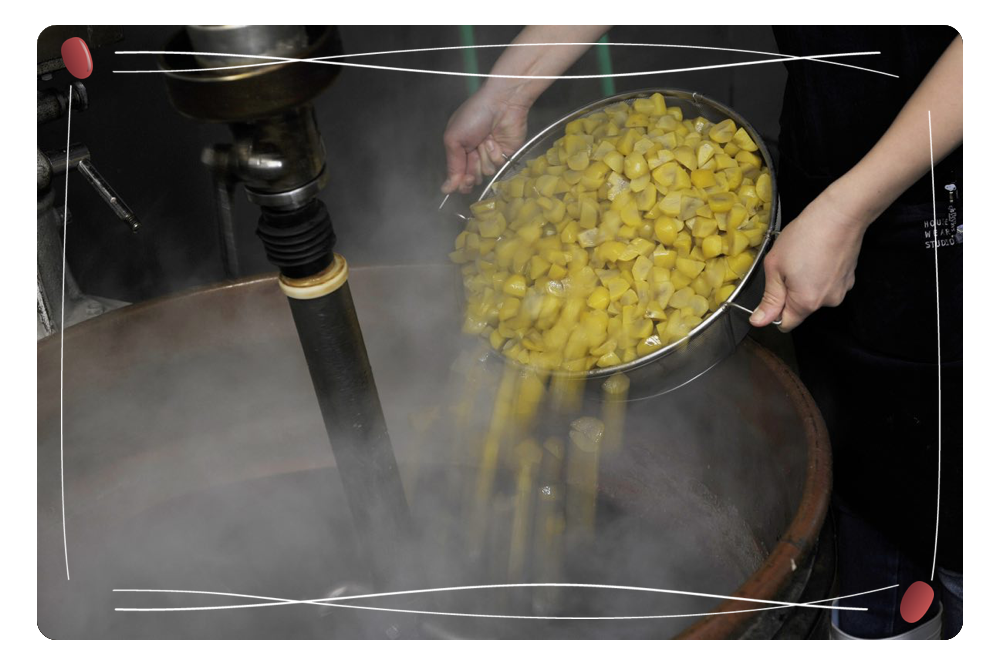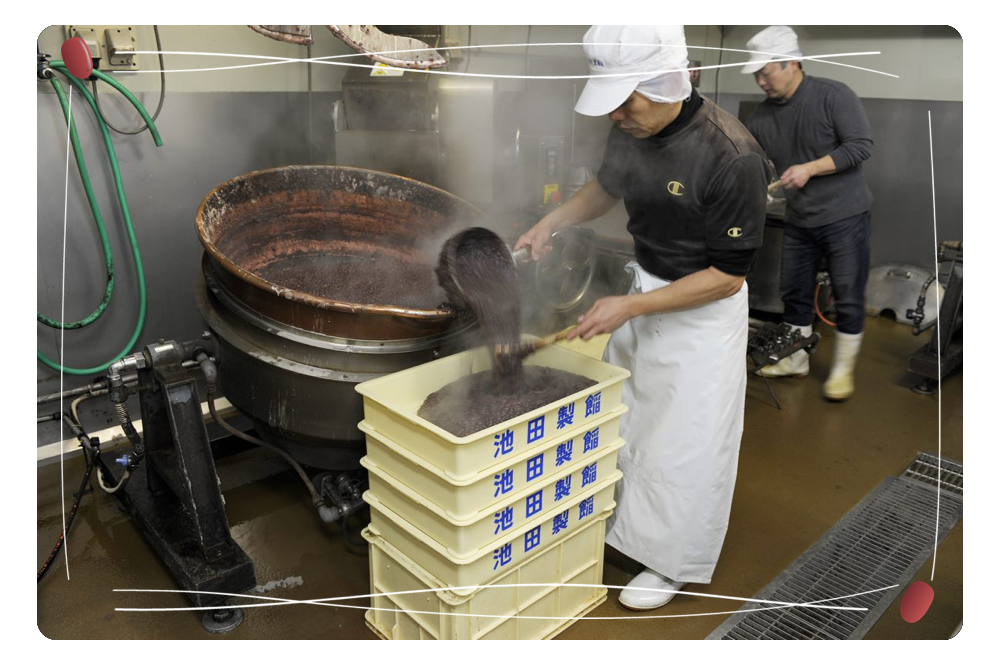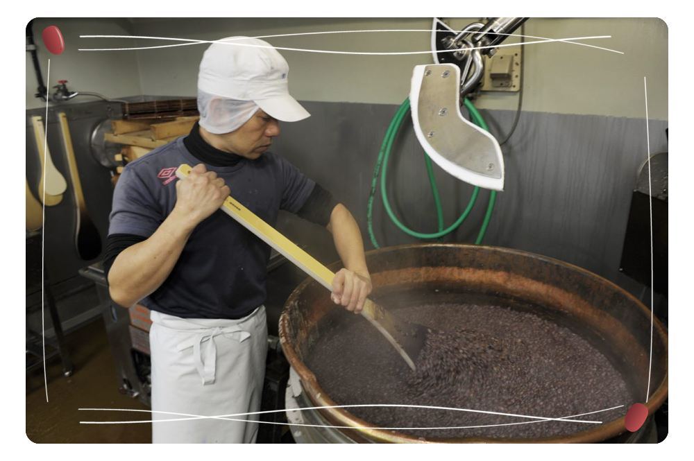 選りすぐった小豆を美味しく炊き上げるため、温度管理や砂糖を加えるタイミングなど長年の経験によって培われた技術でていねいに製造します。